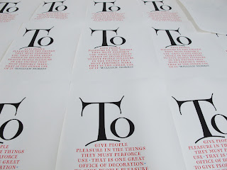 Finally, thinking that one new foundry type might not be enough, I decided to make a second one. My typeface Nicolas, which was drawn while thinking of the enamel-work lettering of Nicolas of Verdun, has now been cut, fit, and trial cast by Micah Currier. The type will be used for the William Morris page in the display settings as well as most of the titling in the book. Like the Lisbon ornaments, the Dale Guild will be releasing a limited casting of Nicolas for sale at the Oxford Book Fair.